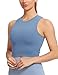 ★REMOVABLE CUPS: Full coverage strappy sports bra, allowing you to adjust the amount of padding a weight in the bra for lightweight wear and easy to clean. High-elastic widened hem fix the yoga tank top round your body, longline design also provide more coverage. Increased height on the side support to hid and coverage your additional breasts.