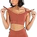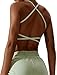 【Design 】 FEOYA Chic Low Cut V Neck Workout Crop Top, removable pads, long sleeve, plunge v neck/scoop cutout deep v neck, twist knot front/crossover, solid color, ultra short sports bra top. Slim fit stretch cropped gym shirts.Sexy cutout 1/2 Cup Sports Bra Crop Top.