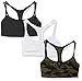 Three pack of solid full-coverage sport bras featuring spaghetti straps and tag-free labels