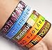 CREATE MEMORABLE & IMPACTFUL CUSTOM MESSAGING FOR: Support, Causes, Fundraisers, Promotions, Parties, Awareness, Motivational Quotes, Couples, Gifts, Organization & Company Events, Party Favors, Birthdays, Classroom Goodie Bags & Fillers, Prizes, Sports & more. PLUS, the custom band is often used as an ID bracelet. LOADS of color options for any occasion, school, birthday, memorial, awareness, or to fit your brand.