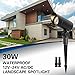 【Super Brightness 30W Landscape Spotlights】30W LED landscape light, 3000 Lumen 3000K warm white great for illuminating your flag spotlight. Equivalent to 200W halogen light, saving electricity cost.It also perfect to ground lighting palm trees,Patio,Garden,Path,Yard,Fences.TIPS: low voltage transformer and wire(BOTH NOT INCLUDED).