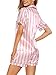 【FENTENG Pajamas】Womens satin pajamas set long sleeve button down pajama sets two-piece blue for women sleepwear loungewear stripes ladies printed women's PJ soft button top with buttons pink polyester grey ft-fenteng green matching lounge tops satin pant
