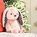 STUFFED BUNNY RABBIT: Little ones can safely spend hours snuggling this fluffy bunny since she’s made with high-quality materials that can stand up to the wear and tear that comes with years of love. This plush animal is also machine washable for easy care.