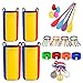Funny Outdoor Party Game Set: The outdoor lawn game set includes 4 colorful potato sack race bags, size fit for kids and adults playing. 4 sets of egg-spoon racing game set, 4 colors of 3-leg relay bands with adjustable elastic tether, 4 colours of Catch Tail Game Belt, and with additional 3 pcs of medals, in total of 23 pcs of game set, suitable for 4-10 players.
