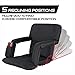 FEEL AT HOME, ANYWHERE - Our heated seat is 20” wide, has a waterproof bottom and water-resistant construction to keep you nice and dry when the bleachers are wet. It comes with high-density memory foam cushions that feel like sitting on your couch. What’s more, our seat offers 6 adjustable reclining positions, back support and soft padded armrests.