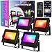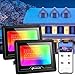 【Timing function and synchronization】Built-in latest timing chip allows you to set your favorite color or mode to turn on and off automatically every day on time without having to set it every time, the memory function makes the colored flood lights stay at the color and light display mode you set last time when you turn it on again, no need to reset.