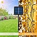 2 Pack Warm White Solar Fairy Lights: 200 LED bulbs on 66 ft high-quality copper wire, with a steady 360 degree viewing angle, ideal for decorating your gardens, patio, yard, deck, stage, holiday, etc. What's more, in the dark, the wire fades invisible, leaving only the bright lights, creating a classy and romantic atmosphere.