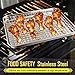 【GRID RACK】 Features cross design, 3/8’’ grid spacing let grease drip through while avoiding the food from falling off, The parallel lines are solidly and densely welded, 2 load-bearing rods prop the rack to support heavy stuff stably, 4 raised feet provide better air circulation around foods, Make it to be much crispier and quicker cooled