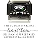 Max impression size: 2.5"x1" (size may vary depending on amount of text). Personalized with your text. Name in lowercase script, address in uppercase sans serif font