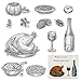 5.Packaging Includes: 1 sheet clear stamps.Contains 12 clear stamps.2* leaf ,1*1*pumpkin porridge, 1*turkey, 1*apple, 1*pine nuts, 1*wine, 1*wine glass, 1*soup, 1*cake, 1*corn, 1*vegetables.The overall size is 14.2*14cm.Perfect for you DIY craft.Different shape for your different need.