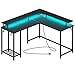 【L DESK WITH LED LIGHTS】PATENT PENDING! This home office desk features built-in LED lighting with 20 colors change, 6 modes, 5 adjustable brightness levels, and 5 flicker frequencies to create beautiful ambiance that enhances your room. This L shaped desk can be installed as a long desk according to your needs, good choice for your bedroom, study and office.