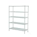Durable steel construction with a Chrome finish; weight capacity per shelf: 300 pounds with leveling feet, 132 pounds with wheels not in motion, and 88 pounds with wheels in motion; weight capacity overall: 1500 pounds with leveling feet, 661 pounds with wheels not in motion, and 441 pounds with wheels in motion (based on evenly distributed weight)