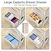 Large Capacity: A good amount of storage with 4 separate drawers shows that you are able to fit about 12-15 rolled up t-shirts or about 6 pairs of jeans in one drawer; Made of Eco-Friendly material, harmless and wipe down easily.