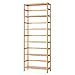 Durable, solid, multifunctional, and stylish, this wood bamboo shelving tower can be used as a bookshelf, shoe rack, plant stand, baker's rack, magazine caddy, media storage, restroom storage, and more