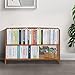 Practical - The two sides of the bookcase are designed with slats, creating a bright and airy look, which can prevent items from falling off the shelves. In addition, this cabinet also contains a fabric storage box, which is convenient for us to store some messy little things.