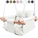 DURABLE AND WASHABLE: Our indoor baby swing is made with certified, machine washable canvas and features durable, UV-resistant ropes. The sturdy canvas baby swing seat measures 15 x 15 inches and has a capacity of 110 lbs.