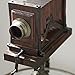 BROWN NATURAL FINISH: Textured silver metal and warm brown wood finishes over accordion Victorian camera