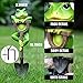 【Unique Design】The lovely green cartoon frog with smiling face standing on the shovel looks like a hardworking gardener.The fork under the sculpture can make it stand firmly. This vivid animal figurine adds to the fun of the yard and home.