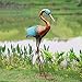 Metal crane yard art with vibrant color variations of black and white, attractive,elegant and prominent figure in any yard.