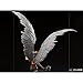 The furious figure of the winged warrior takes flight over technological metallic debris, as if she was breaking through a spaceship window, the imposing heroine advances with her mace, made of the umpteenth mystical metal capable of affecting magical creatures in her right hand, and with the left fist clenched and with its wings spread, ready for combat.
