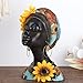 【African Woman Statue】Creative Light Luxury Collectible,Female African Figurines Bust Sculpture,A special gift for family and friends who love African culture or African decorations,The sunflower on the statue represents the meaning of smiling at the sun every day, Which is very inspirational