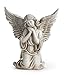 Figure of a serene-faced angel holding a dove in her hands; features intricate detailing on wings