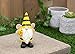 Add a touch of whimsical charm to your decorating space with this adorable bumblebee gnome with beautiful wings wearing a striped black and yellow outfit and carrying a bee hive