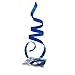 This small, blue table top sculpture measures 18.5" x 5.5" x 8.5", including the flat aluminum base plate which measures 6" W x 6" L. This sculpture weighs approximately 1 lb.