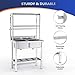 【Prep & Utility Sink Set】The double shelves can store cleaning equipment and accessories, the basin with stainless steel drainage devices with detachable filters can prevent food and debris from clogging the drainage pipe.Moisture-proof Coating. The whole sink bottom body coated with moisture-proof pad, which protects the sink from moisture. Water vapour in the air can't condense into water drip. Also effectively reduces the noise from water flow.
