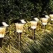 【12-Hour Lighting】 Solar outdoor lights, powered by polysilicon solar panels, automatically convert sunlight into electricity through high-capacity 600mAh rechargeable batteries. When fully charged in full sun, they can illuminate your garden for 12 hours or more.
