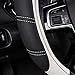💎【EASY INSTALLATION】This PU leather steering wheel cover requires hassle-free installation (You can refer to the installation instructions on our product page). Simply slip it right on to your steering wheel and your good to go. Just place the cover on top of the steering wheel. Press and hold the upper part of the cover and gradually lower it with both hands on either side to tighten.