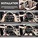 ★ Easy Installation: Just place the cover on top of the steering wheel. Press and hold the upper part of the cover and gradually lower it with both hands on either side to tighten and adjust it. (Note: the steering wheel cover has a built-in anti-skid lining, which will be difficult to install for the first time. A loose steering wheel cover may pose a driving risk!!)