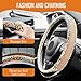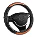 INCREASED SAFETY:Leather steering wheel cover with skidproof rubber padded inner ring and Embossed splicing surface design that can tightly wrap the steering wheel to offer a maximum cushioning and grasp ,Help to better control the steering wheel when turning.