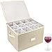 QUILTED HARD SHELL PROTECTION: Our stackable stemware storage box is made of durable linen fabric, sturdy cardboard and padded foam; Padded, Sturdy top cover, bottom and side panels provide ample protection for moving or transporting