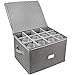 EASY ASSEMBLY & REMOVABLE DIVIDERS: Measures 16” x 13” x 10"; 5 cardboard dividers separate the case into 12 4” x 4” compartments, prevents items from cracking & scratching; Dividers can be removed for storing larger glassware