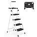 NON-SLIP DESIGN: The 4 step ladder has non-slip rubber handgrip making the stool easy to climb and carry. Wide pedals with non-slip rubber pattern offer heel-to-toe foot support. Big rubber feet fully touch the groud to stays firmly and prevent floors from scratches.