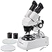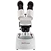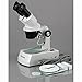 Stereo microscope for home or classroom use enables students and hobbyists to inspect biological specimens, rocks, stamps, jewelry, and large specimens that require handling or manipulation
