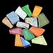 Package: Square mosaic glass craft kits mix 6-7 colors: dark blue,orange,yellow, carrot-red,purple and dark & light green. Approx 120 pcs packed in a plastic jar.