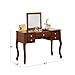 Includes five-drawers for storage and a matching stool covered in a lavish plush fabric.