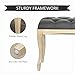 FRENCH VINTAGE STYLE: The special button tufted design on a beige linen cover makes this rectangle ottoman bench simple and classic. The curved brushed wood legs add a sense of ancient luxury to this dining bench.