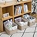 Six collapsible beige cubbie storage baskets for organizing offices, nurseries, and bedrooms