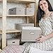 【Premium Quality】 -This medium fabric storage box with lids are made of durable and breathable linen fabric with the high quality cardboard on the sides and bottom. The inner 2.2mm thick cardboard maintains fabric storage box shape and structural integrity. Both handles are sewn through cardboard to make this decorative storage boxes rigid enough to hold a heavy load.