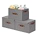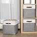 🔑 【Unique Design】Unique design with lids and 3 Leather Handles. The linen fabric storage bin with a reinforced flip-up lid to prevent dust and moisture from entering for longer life. Also, with 3 leather handles to meet your multi-directional needs. You can easily move from any Angle.Wherever you place them, in the closet, under the bed, or on the shelf, there is no worry to move them with containing items inside