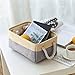 STURDY ROPE HANDLE:The storage basket comes with two rope handles for easy access and for portability,rope handles for easy slide in and pull out of shelves or closet,They are attached with metal grommets to the basket and the handles themselves are made from soft cotton rope