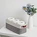 【Unique Design & Modern & Decorative】Set of 2 small toilet paper baskets, dimensions(each): 15(L) x 6(W) x 5.5(H) inches. Fabric storage baskets bring you organizing convenience and a sweet home. Great for socks, underwear, books, magazines, toys, pet products, wipes, towels, decorations, office supplies, DVDs, and gifts. The fabric baskets with neutral colors can match a lot of home styles - keeping your home nice and tidy.
