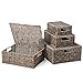 DESIGN SPECIFICATIONS — Decorative storage boxes feature wooden crate inspired pattern in rustic gray color — Soft fabric storage bins made of non-woven polyester with cotton rope — Carry handles and Velcro lid closure — Cardboard base insert keeps each bin in place — Wipe clean — Measures approximately 16.62” L x 8” H x 12.25” W