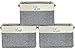 DESIGN SPECIFICATIONS — Decorative storage boxes feature wooden crate inspired pattern in rustic gray color — Soft fabric storage bins made of non-woven polyester with cotton rope — Carry handles and Velcro lid closure — Cardboard base insert keeps each bin in place — Wipe clean — Measures approximately 16.62” L x 8” H x 12.25” W