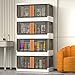 【A Must Have Storage Bins with Lids】Our folding storage box is stronger material and innovative design compare to fabric storage box. Our plastic storage bins is installation free and visible to locate articles compare to the wooden closet storage cabinet. Our stackable storage bins with open front door can take out things by opening the front doors other then taking down the upper bins and open the lids to reach articles compare to traditional storage bins.
