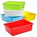 Set of 4 small plastic storage bins: 1 Blue, 1 Green, 1 Yellow, 1 Red. Phthalate and BPA free.