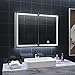 WITH LED lIGHTING - This mirror cabinet with lighting, adjustable brightness, and three light colors: cold, warm, and natural light, provides 3 lighting modes from 3000 K to 6500 K. Touch the blue switch on the mirror to turn on the LED lights. Press briefly to switch between these three types of light, and press and hold to adjust the brightness. The blue illuminated button is also easily visible at night.